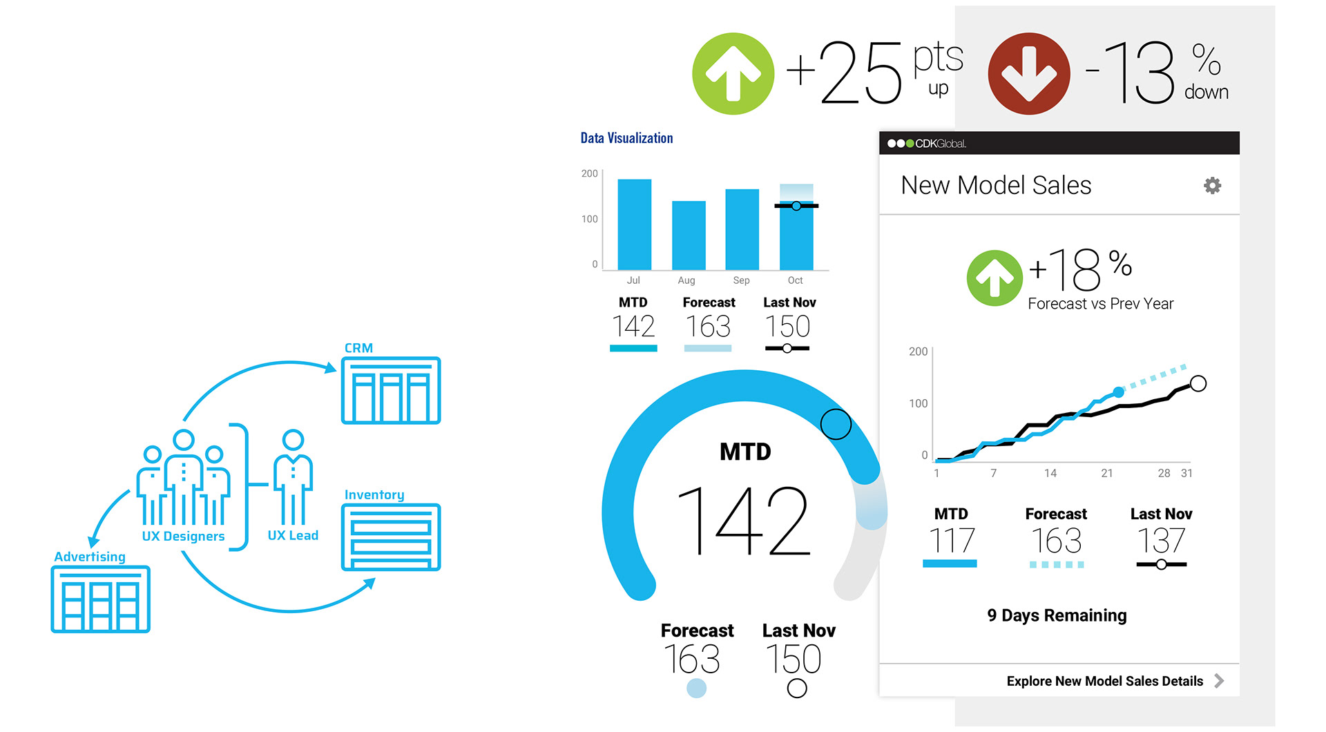 Beyond UI standards and governance, the Core UX team expanded its role to provide visual design support for product teams company-wide—helping align interfaces, enhance usability, and reinforce brand cohesion across CDK’s growing digital ecosystem.