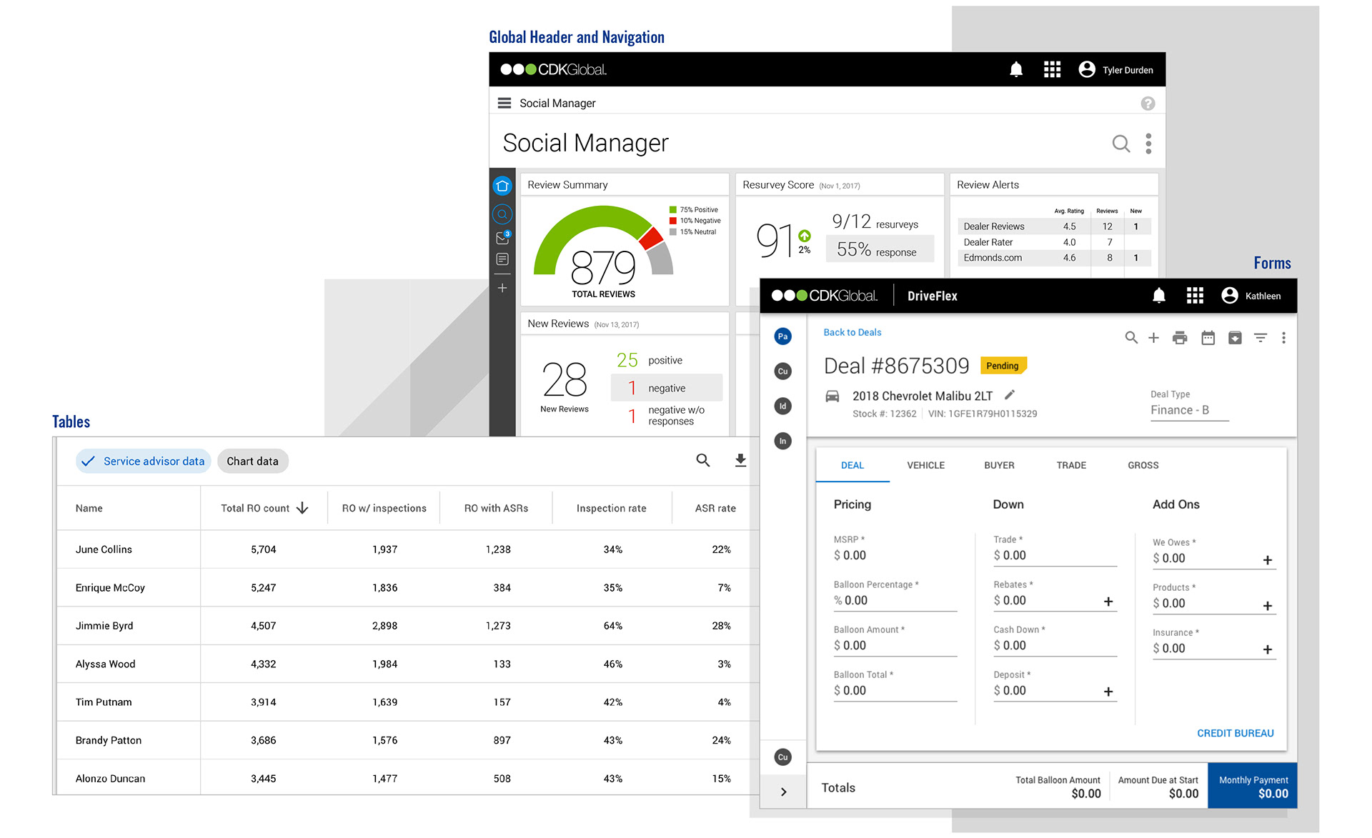 To address this, our UX and front-end engineering teams developed RADIAL, CDK’s global design system, built on Google’s Material Design framework. RADIAL became the most comprehensive design system in the automotive marketing and dealer services space, featuring: